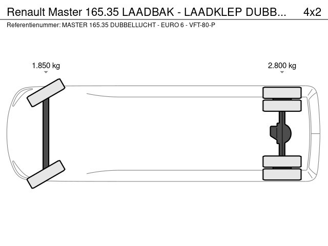 Renault Master - 165.35 LAADBAK - LAADKLEP DUBBELLUCHT - EURO 6 - VFT-80-P