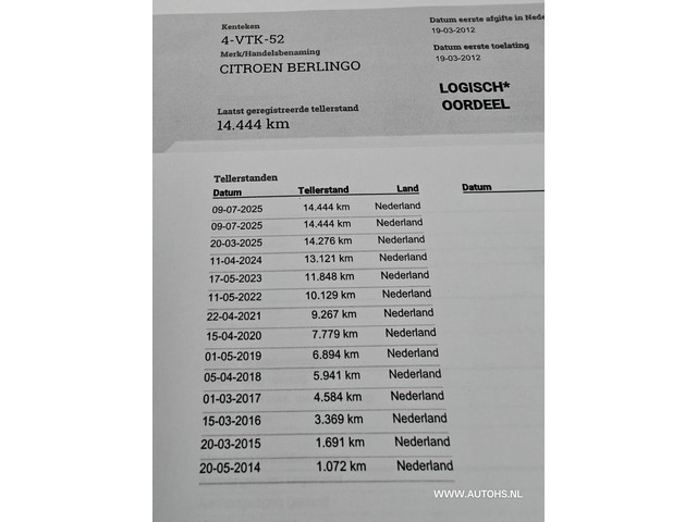 1e eigenaar, 2 Sleutels, 3e remlicht, Afstandsbediening voor centrale deurvergrendeling, Armsteun voor, Banden 90%, Buitenspiegels verwarmbaar, Electronic Brake Distribution, Elektrische ramen voor, grijs kenteken, nationale autopas, onderhoudsboekjes aanwezig, Pack Comfort, Pack Electrique, Rookvrij, Tussenschot volledig, zeer mooie en technisch goed onderhouden auto. Een hele leuke Citroen Berlingo 1.6 HDI. Met een unieke km stand van 14444 km!! Van 1e eigenaar [KLM] afkomstig en nederlands...