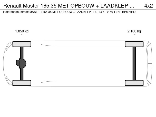 Renault Master - 165.35 MET OPBOUW + LAADKLEP 1000 KG. - EURO 6 - V-69-LZN - BPM VRIJ!