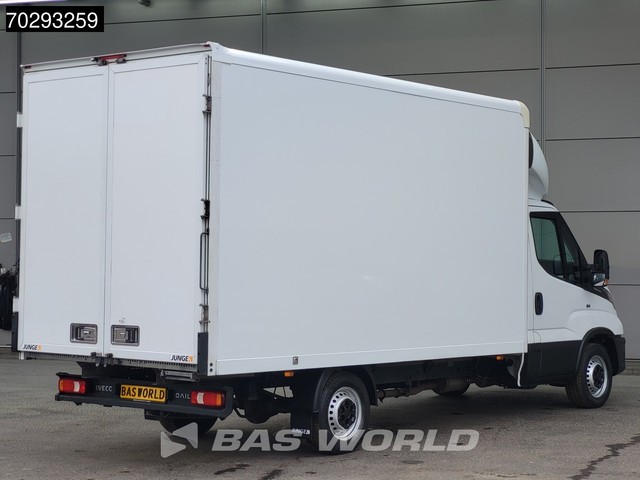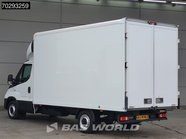 Achteruitrijcamera, AdBlue, Elektrische spiegelbediening, Koplamptype: halogen, Multifunctioneel stuurwiel, Start / stop systeem, Achterdeur type: double_doors, Bouwjaar opbouw: 2022, Capaciteit van de opbouw: 21 m3, Deuropening breedte: 203, Deuropeningshoogte: 219, Materiaal vloer. Iveco; Daily 35S16; 160PK Automaat Bakwagen Achterdeuren Airco Camera Euro6 Meubelbak Koffer 21m3 Airco; AdBlue-systeem; 8 versn., Automaat; Bandenmaat: 225/65 R16; Remmen: schijfremmen; As 1: Bandenprofiel...
