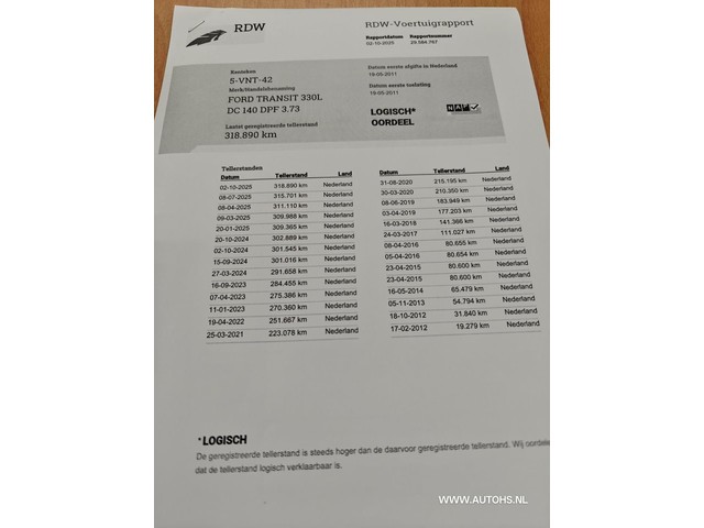| Km. stand 318.890 km | Vermogen 103 kW (138 pk) |