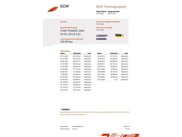 | Km. stand 199.159 km | Vermogen 74 kW (99 pk) |