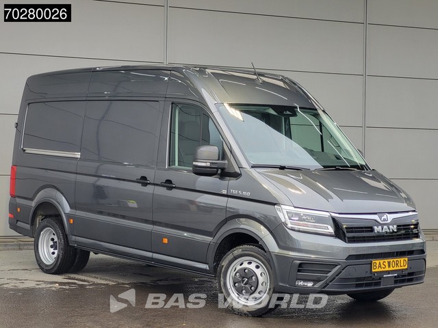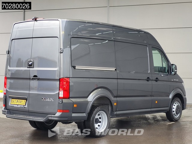 Achteruitrijcamera, AdBlue, Elektrische spiegelbediening, Koplamptype: led, Multifunctioneel stuurwiel, Navigatie systeem, Parkeersensoren achter, Parkeersensoren voor, Regen sensor, Start / stop systeem, Achteropstap, Afstand tussen wielkasten: 103, Deuropening breedte: 155, Deuropeningshoogte: 174, Forward collision warning, Lane departure warning, Lane keep assist, Luchtgeveerde stoel. MAN; TGE 5.160; Uniek! Dubbellucht Automaat L3H3 160PK ACC LED Navi Airco Camera Parkeersensoren v+a...