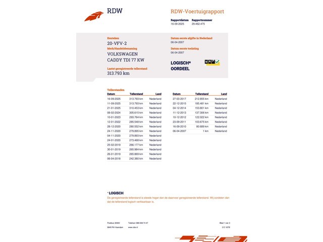 | Km. stand 313.900 km | Vermogen 77 kW (103 pk) |