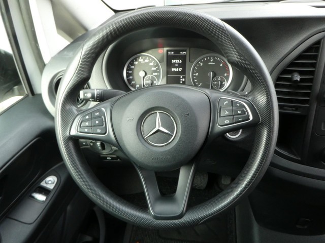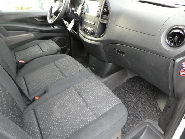 Achteruitrijcamera, Boordcomputer, Centrale deurvergrendeling met afstandsbediening, Elektrische ramen voor, Lichtsenor, Navigatie, Parkeersenor, Regensensor, Stuur verstelbaar, Tussenschot volledig, tweezits bijrijdersbank. Mercedes-Benz; Vito; 114 CDI Lang L2 automaat 3 zits camera; Achterwielaandrijving; 4 cilinders; Gewicht: 1.885kg; GVW: 2.800kg; Wielbasis: 320cm; 7,3 l/100km; Euro 6; APK: tot dec. 2025; BTW verrekenbaar voor ondernemers; Wegenbelasting: € 169p/kwrt
