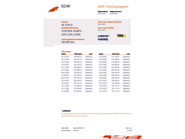 | Km. stand 283.850 km | Vermogen 66 kW (88 pk) |