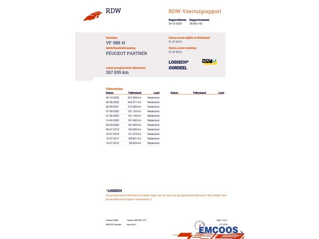 | Km. stand 267.939 km | Vermogen 66 kW (88 pk) |