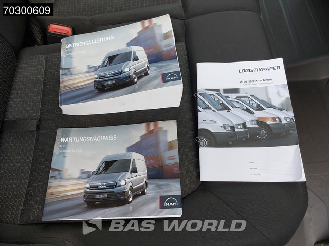 Achteruitrijcamera, AdBlue, Elektrische spiegelbediening, Koplamptype: halogen, Parkeersensoren achter, Parkeersensoren voor, Standkachel, Start / stop systeem, Achteropstap, Afstand tussen wielkasten: 137, Deuropening breedte: 155, Deuropeningshoogte: 183, Materiaal vloer. MAN; TGE 3.180; Automaat 180PK L4H3 Trekhaak Airco Cruise Camera Parkeersensoren Euro6 L3H2 Airco Cruise control; AdBlue-systeem; Bandenmaat: 235/65 R16; As 1: Bandenprofiel links: 6 mm; Bandenprofiel rechts: 6 mm; Vering:...