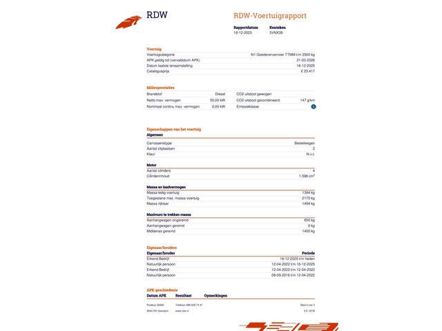| Transmissie Onbekend | Categorie Bedrijfswagen |