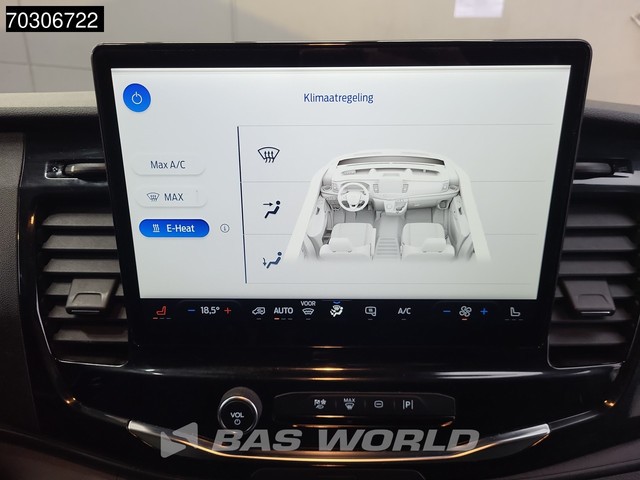Elektrische spiegelbediening, Koplamptype: halogen, Multifunctioneel stuurwiel, Navigatie systeem, Parkeersensoren achter, Parkeersensoren voor, Regen sensor, Tacho: digital, Verwarmde stoelen, Achteropstap, Afstand tussen wielkasten: 136, Deuropening breedte: 157, Deuropeningshoogte: 158, Forward collision warning, Lane keep assist, Materiaal vloer. Ford; e-Transit; Elektrisch 68kWh 317km WLTP L2H2 Navi Airco Cruise Parkeersensoren v+a SYNC4-Display CarPlay Airco Cruise control; Elektrisch;...