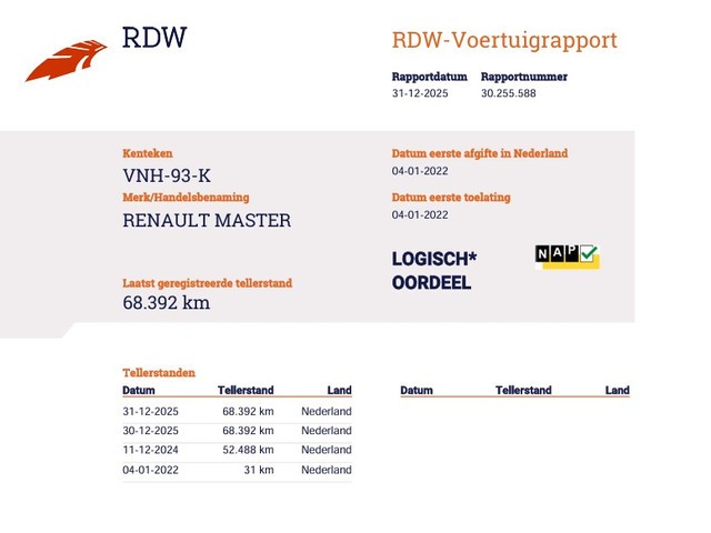 | Km. stand 68.392 km | Vermogen 100 kW (134 pk) |