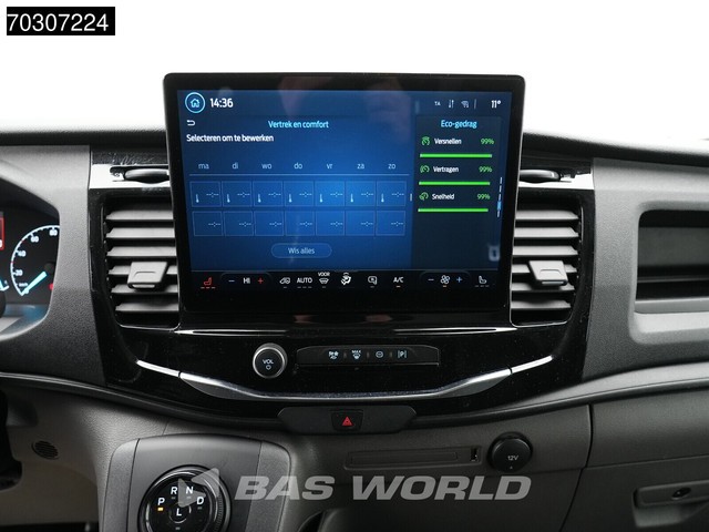 Achteruitrijcamera, Elektrische spiegelbediening, Koplamptype: halogen, Multifunctioneel stuurwiel, Navigatie systeem, Parkeersensoren achter, Parkeersensoren voor, Tacho: digital, Verwarmde stoelen, Afstand tussen wielkasten: 133, Deuropening breedte: 154, Deuropeningshoogte: 159, Forward collision warning, Lane departure warning. Ford; e-Transit; Elektrisch 68kWh 317km WLTP L2H2 Navi Camera Airco Cruise SYNC4-Display CarPlay Cruise control; Elektrisch; Bandenmaat: 235/65 R16; As 1:...