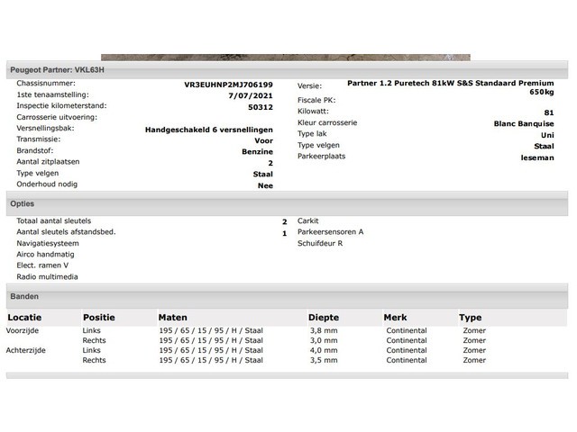 Peugeot Partner - 1.2 Benzine 111PK Euro6 Premium / Airco / Navigatie / Cruise-ctr. / Schuifdeur + Raam / Radio multimedia / Apk 07-2027