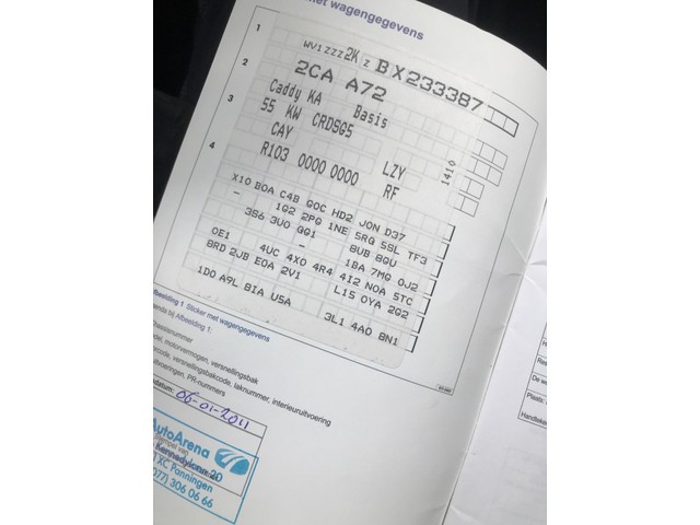 Airbag(s) voor, Laadruimte met deuren en ruit, Ruitenwisser achter, Schuifdeur rechts. https://bwkessel.autofactor.com/nl/technical-inspection/1138516/latest-version/B/QBd229. Volkswagen Caddy 1.9 TDI 75 pk AC Cruise Trekhaak 1.400 kg. VIN: WV1ZZZ2KZBX233387. APK 09-01-2017. Prijs: € 4.700,- Euro Marge, er komt geen btw meer bij maar kan wel gewoon zakelijk worden aangeschaft. Ex gemeente. Voor meer foto's zie: www.bwkessel.nl. Tel Jort: +31657047692. Tel Roel: +31774669421 ( WhatsApp )...