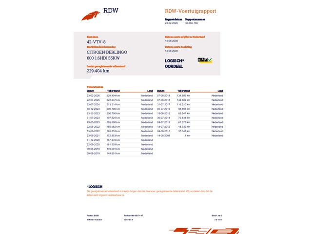 | Km. stand 229.514 km | Vermogen 55 kW (73 pk) |