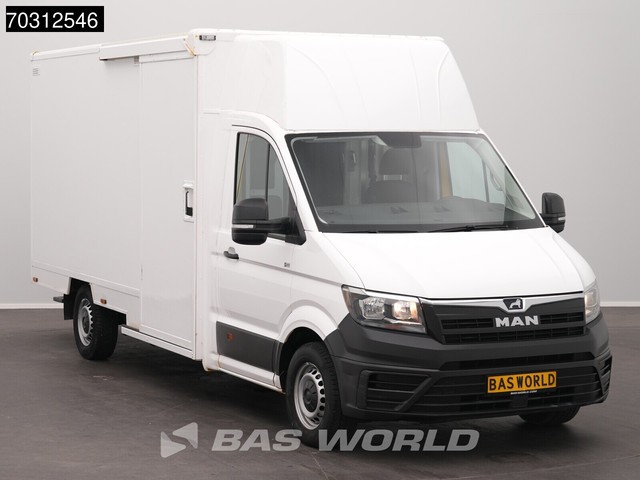 Achteruitrijcamera, AdBlue, Elektrische spiegelbediening, Koplamptype: halogen, Start / stop systeem, Achterdeur type: double_doors, Achteropstap, Afstand tussen wielkasten: 125, Deuropening breedte: 100, Deuropeningshoogte: 196, Materiaal vloer. MAN; TGE 3.100; 433cm Bakwagen Achterdeuren Zijdeur Camera Euro6 Meubelbak Koffer Verkoopwagen Pakketwagen; AdBlue-systeem; Bandenmaat: 235/65 R16; As 1: Bandenprofiel links: 5 mm; Bandenprofiel rechts: 5 mm; As 2: Bandenprofiel links: 8 mm;...