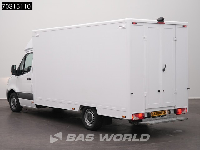 Achteruitrijcamera, AdBlue, Elektrische spiegelbediening, Koplamptype: halogen, Multifunctioneel stuurwiel, Start / stop systeem, Achterdeur type: double_doors, Achteropstap, Afstand tussen wielkasten: 129, Deuropening breedte: 103, Deuropeningshoogte: 195, ESP, Materiaal vloer. Mercedes; Sprinter; Automaat 150PK Bakwagen Airco Camera MBUX CarPlay Euro6 Meubelbak Koffer Verkoopwagen Pakketwagen Airco; AdBlue-systeem; Bandenmaat: 235/65 R16; As 1: Bandenprofiel links: 4 mm; Bandenprofiel...