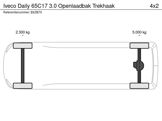 Iveco; Daily; 65C17 3.0 Openlaadbak Trekhaak; Handgeschakeld; Constructie: 2011; Achterwielaandrijving; Max. aslast voor: 2300 kg; Max. aslast achter: 5000 kg; 4 cilinders; Gewicht: 3.210kg; GVW: 6.500kg; LxB: 638x226cm; Wielbasis: 375cm; 3 zitplaatsen; Euro 5; APK: tot okt. 2026; BTW verrekenbaar voor ondernemers; Wegenbelasting: € 263p/kwrt. U kunt ons telefonisch bereiken via de onderstaande telefoonnummers: Kantoor 0031 (0)174 240 600. Aad 0031 (0)6 53255133. Rob 0031 (0)6...