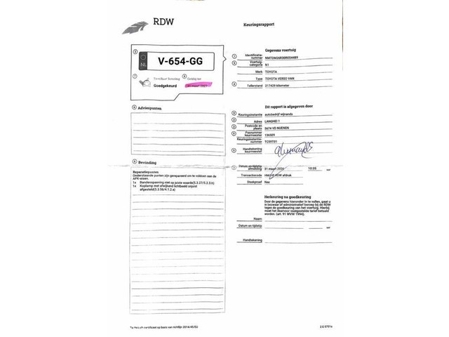 | Model Toyota Verso | Kenteken 1L2Q8R |