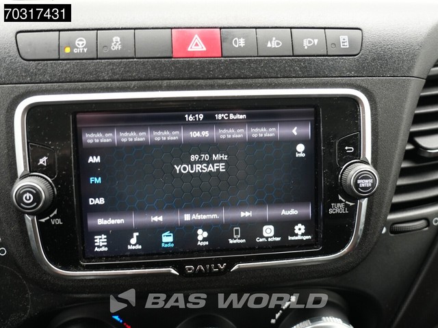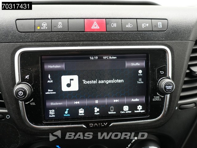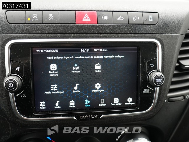 Achteruitrijcamera, AdBlue, Elektrische spiegelbediening, Koplamptype: halogen, Multifunctioneel stuurwiel, Parkeersensoren achter, Regen sensor, Start / stop systeem, Achteropstap, Afstand tussen wielkasten: 130, Deuropening breedte: 153, Deuropeningshoogte: 178, Materiaal vloer. Iveco; Daily 35S16; Automaat L3H2 160PK 3,5t Trekgewicht Airco Camera Parkeersensoren Euro6 L3 Airco; AdBlue-systeem; 8 versn., Automaat; As 1: Bandenmaat: 225/65 R16; Bandenprofiel links: 9 mm; Bandenprofiel...