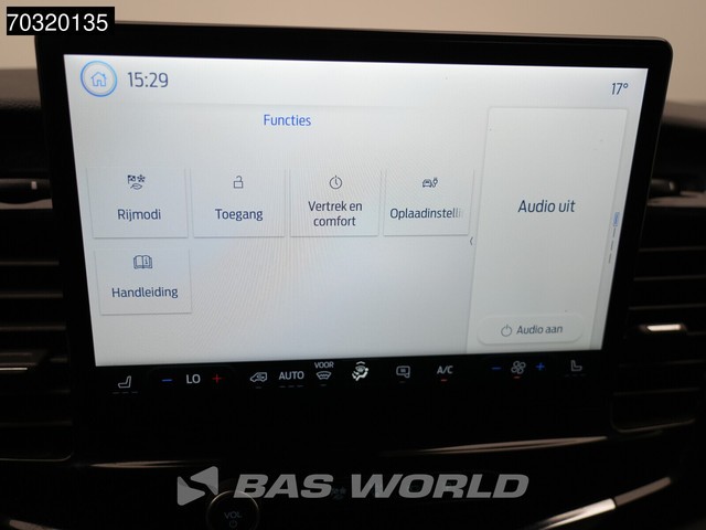 Achteruitrijcamera, Elektrische spiegelbediening, Koplamptype: halogen, Multifunctioneel stuurwiel, Navigatie systeem, Parkeersensoren achter, Parkeersensoren voor, Regen sensor, Tacho: digital, Verwarmde stoelen, Afstand tussen wielkasten: 133, Deuropening breedte: 157, Deuropeningshoogte: 182, Forward collision warning, Lane keep assist, Materiaal vloer. Ford; e-Transit 185PK; Elektrisch 68kWh 317km WLTP L2H3 Hoog Dak 360camera Navi Airco Cruise SYNC4-Display CarPlay L2 Airco Cruise...